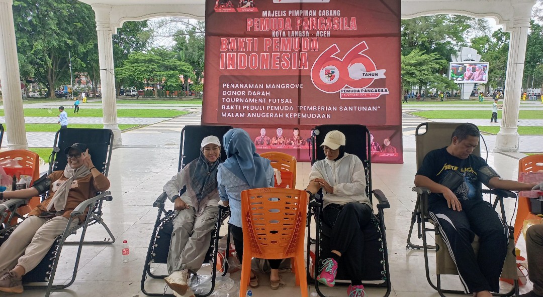 Kota Langsa – Dalam rangkaian kegiatan memperingati Hari Ulang Tahun Pemuda Pancasila (HUT PP) ke-66 yang bertepatan pada Hari Sumpah Pemuda, 28 Oktober, Majelis Pimpinan Cabang Pemuda Pancasila (MPC PP) Kota Langsa kumpulan 66 kantong darah, di Tribun Lapangan Merdeka, Gampong Jawa, Kecamatan Langsa Kota, Sabtu (25/10/2025).