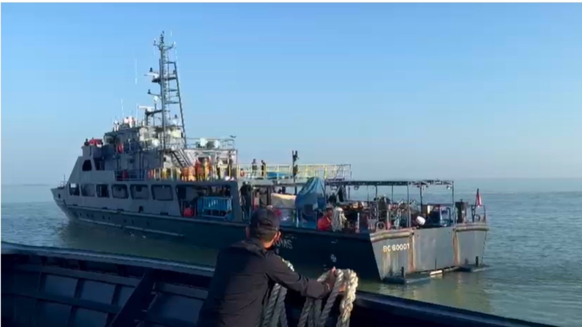 Untuk mempercepat pendistribusian bantuan, pukul 07.30 WIB dilaksanakan proses ship-to-ship (STS) atau pemindahan barang dari BC 60001 ke Kapal BC 30001. Proses ini dilakukan langsung di perairan Langsa agar bantuan dapat segera dibawa ke darat dan diteruskan ke titik-titik penyaluran yang membutuhkan.