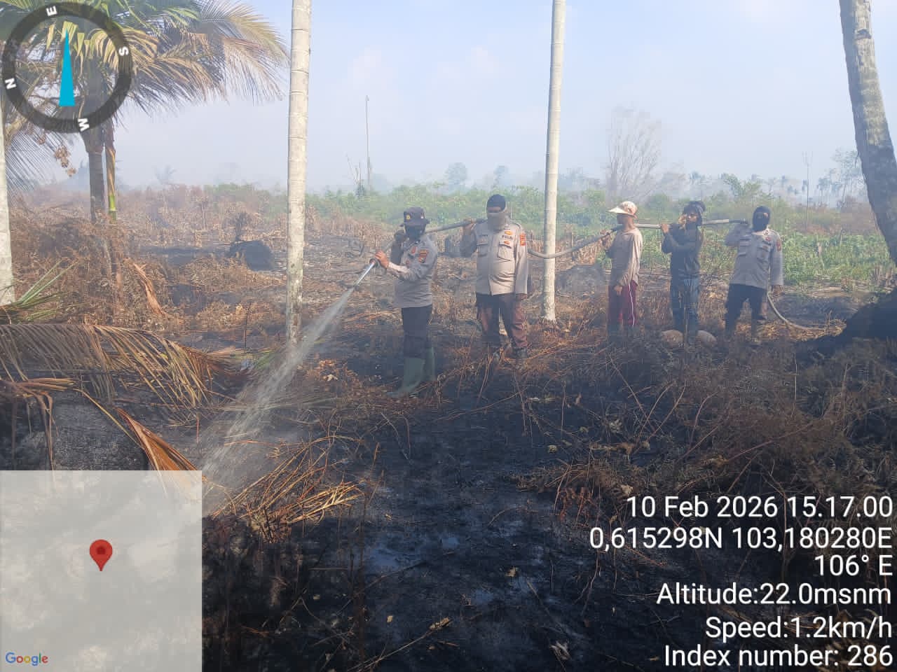 IPNews.id – RIAU |Tim Penanganan Kebakaran Hutan dan Lahan (Karhutla) Kecamatan Kuala Kampar melakukan pendinginan pada sejumlah titik panas (hotspot) yang terpantau di Dashboard Lancang Kuning, Selasa (10/2/2026). Kegiatan ini dilakukan sebagai langkah antisipasi mencegah meluasnya kebakaran lahan di wilayah hukum Polsek Kuala Kampar, Polres Pelalawan.