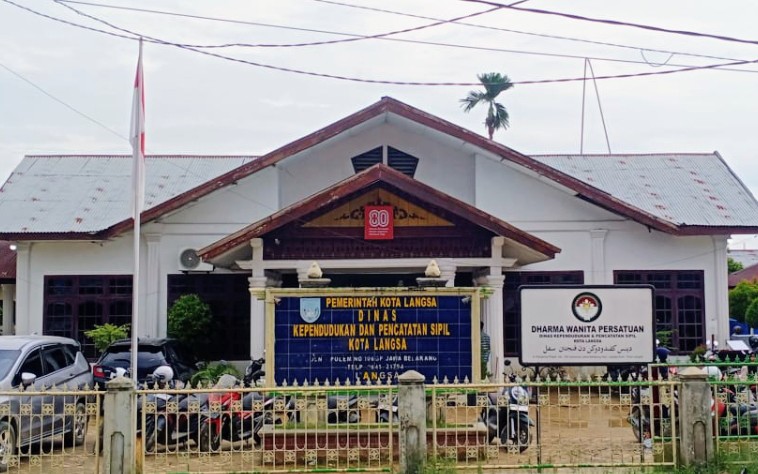 Kantor Dinas Kependudukan dan Pencatatan Sipil Kota Langsa, Jalan Panglima Polem No. 106, Gampong Jawa Belakang, Kota Langsa, Aceh. Jumat (02/01/2026). Kota Langsa – Pemerintah Kota Langsa melalui Dinas Kependudukan dan Pencatatan Sipil (Disdukcapil) Kota Langsa telah melakukan pelayanan publik administrasi kependudukan (Adminduk) selama tahun 2025, tercatat sebanyak 17.733 keping Kartu Tanda Penduduk Elektronik (KTP-el) tercetak.