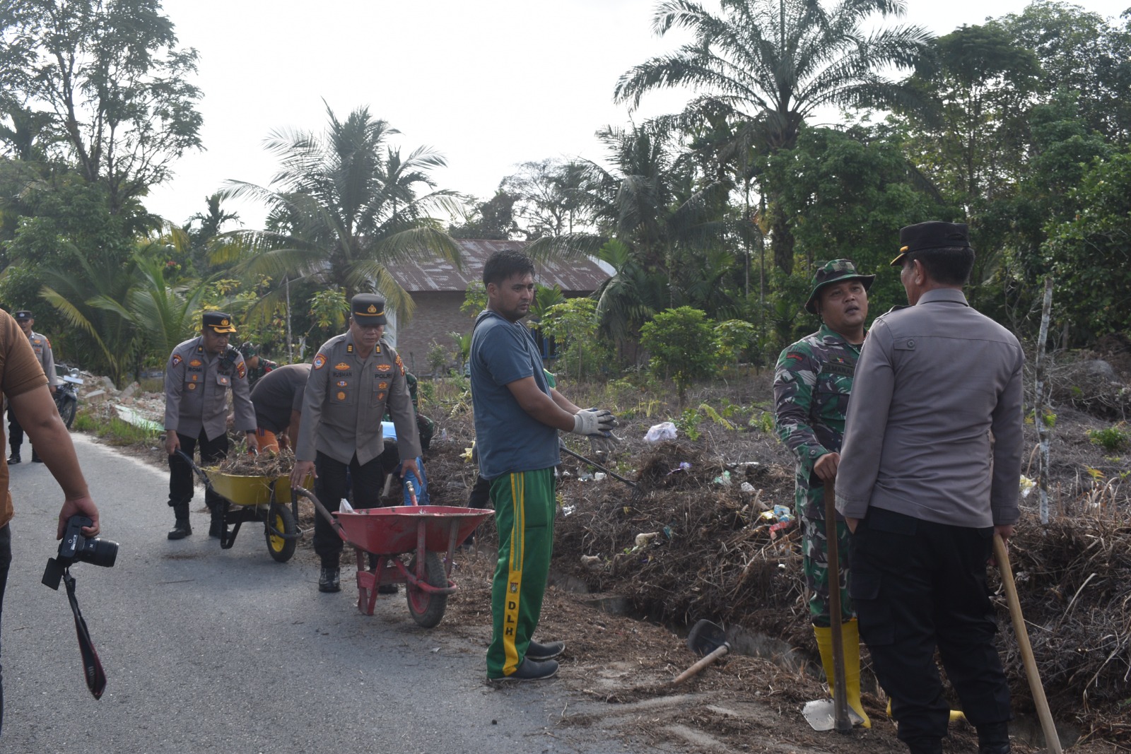 Apel konsolidasi dipimpin oleh Kabag OPS Polres Kampar. Setelah apel, peserta goro dibagi menjadi beberapa kelompok dan langsung melaksanakan pembersihan parit dan bahu jalan.