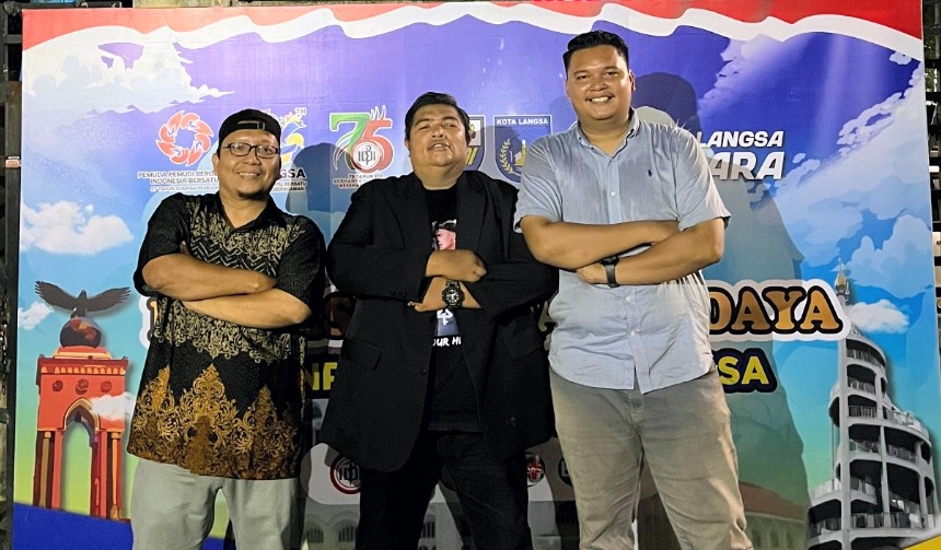 Ketua Panitia Peringatan HSP ke-97 DPD KNPI Kota Langsa (Tengah) Musliadi, Sekretaris (Kiri) Muttaqin, Bendahara (Kanan) Wahyu Ramadana.