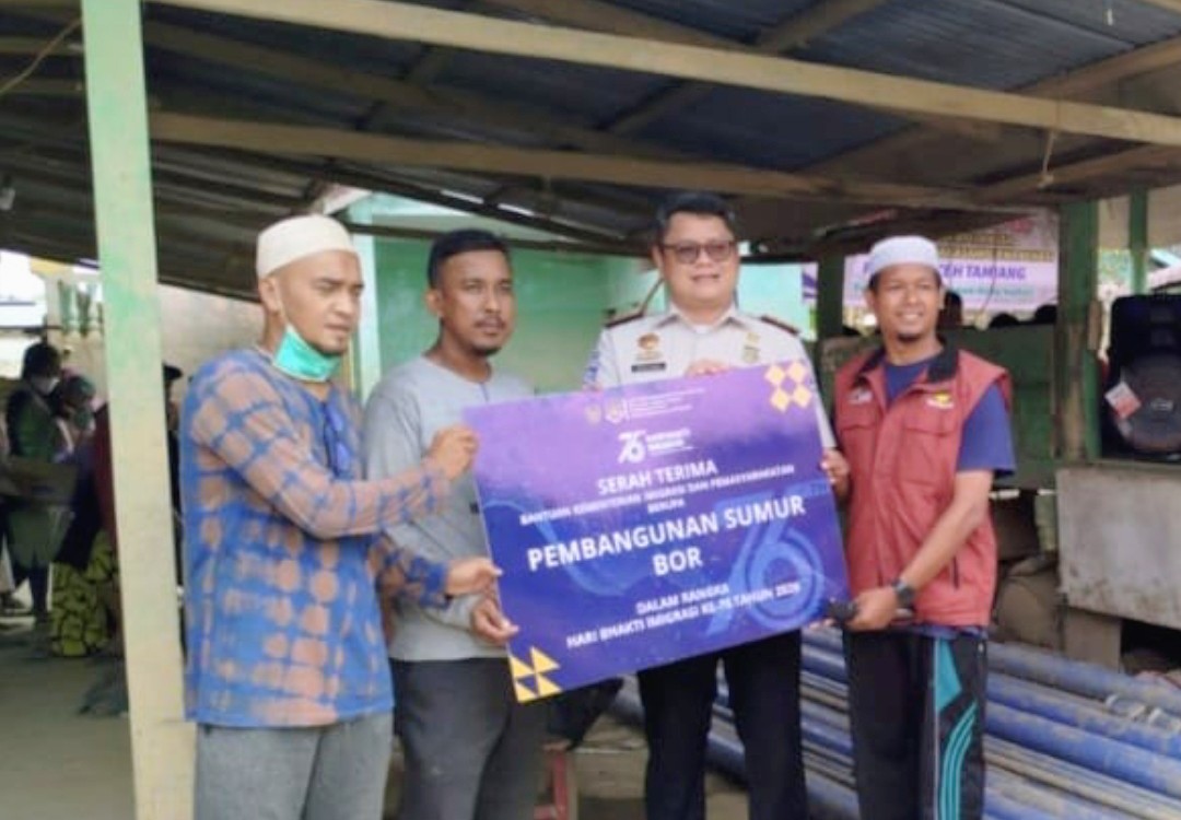 Kepala Kantor Imigrasi Kelas II TPI Langsa, Indra Sakti Suhermansyah menyerahkan secara simbolis bantuan pembangunan sumur bor di Kabupaten Aceh Tamiang, Kamis (12/2/2026). Kota Langsa – Kantor Imigrasi Kelas II TPI Langsa bantu sumur bor untuk warga yang terdampak banjir bandang di dua titik di Kabupaten Aceh Tamiang, Kamis (12/2/2026).