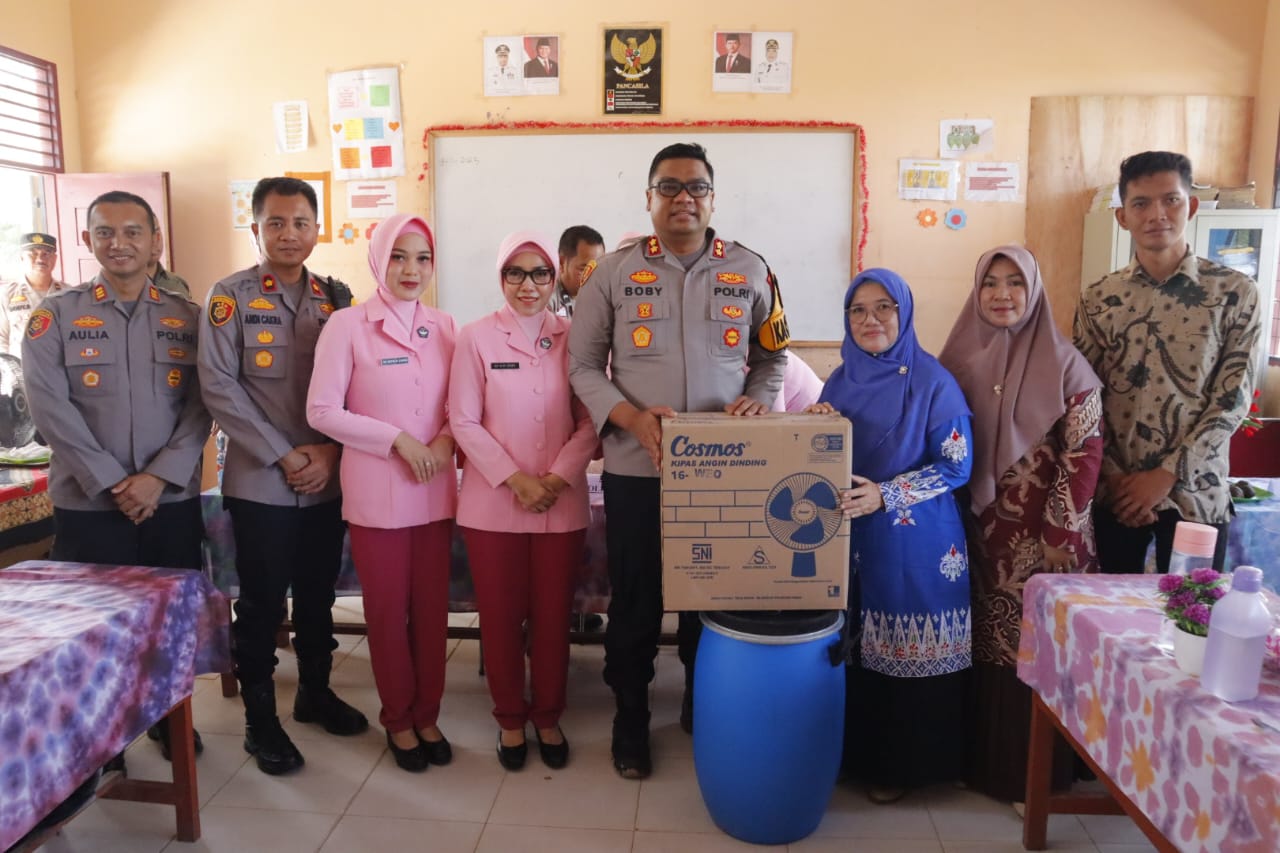 Sebagai bentuk dukungan, Bhayangkari Cabang Kampar memberikan bantuan berupa 2 unit meja guru, 8 buah kipas angin, dan 8 buah tong sampah.
