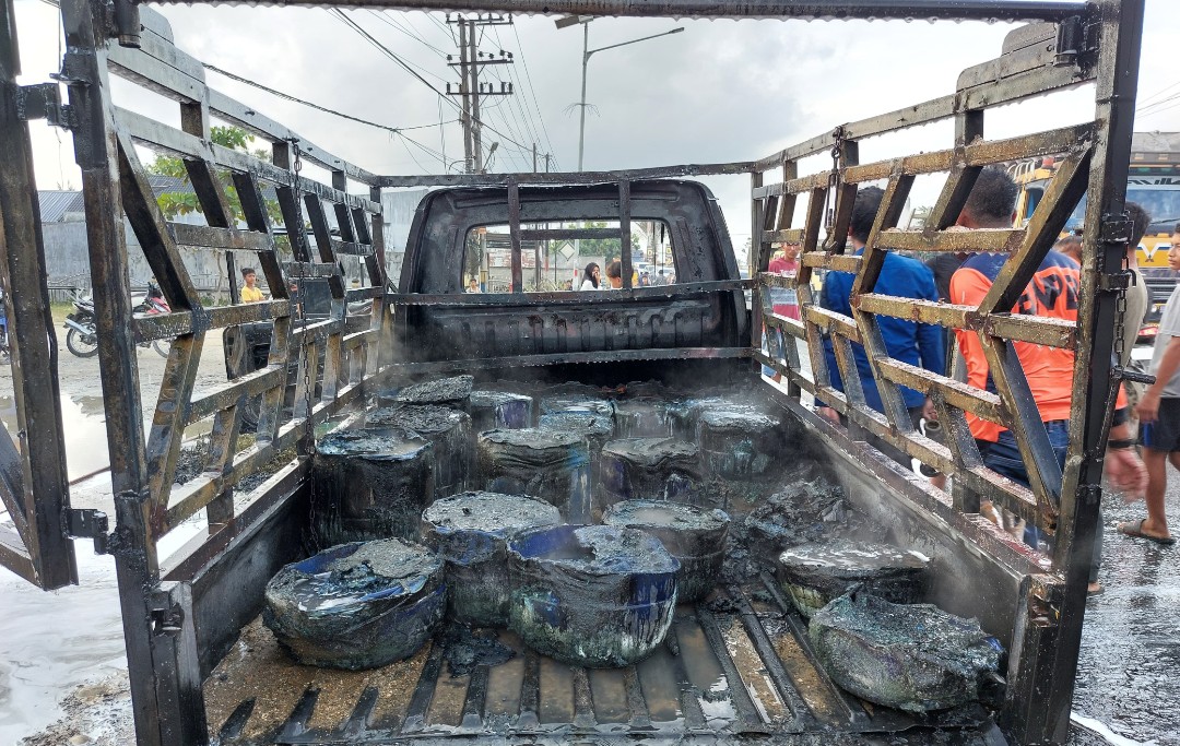 Tim BPBD sekitar satu jam lebih memadamkan api yang menyulut mobil pick up tersebut dan berhasil dilakukan pemadaman.