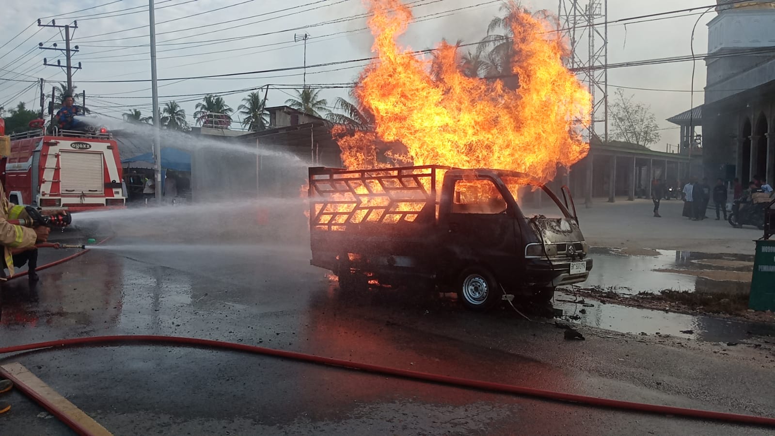 Kota Langsa – Badan Penanggulangan Bencana Daerah (BPBD) Kota Langsa memadamkan satu unit mobil pick up jenis carry diduga angkut BBM ludes terbakar di Jalan Lintas Medan Banda Aceh, Gampong Sungai Lueng, Kecamatan Langsa Timur, Jum’at (06/02/2026).