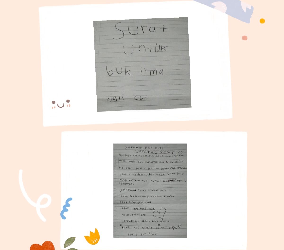 Kota Langsa – Momentum peringatan Hari Guru Nasional tahun 2025, sebuah ungkapan isi hati seorang siswi Dek Bunga sapaan akrabnya untuk Wali kelas tercinta Ibuk Irma.