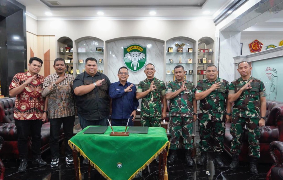 Banda Aceh – Panglima Komando Daerah Militer Iskandar Muda (Pangdam IM), Mayor Jenderal TNI Joko Hadi Susilo, S.I.P, bersama Region Head PTPN IV Regional VI Yudhi Cahyadi secara resmi menandatangani Perjanjian Kerja Sementara (PKS), Rabu (25/02/2026).