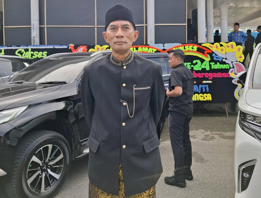 Kota Langsa – Pj Geuchik Gampong Seuriget, Kecamatan Langsa Barat, Nugroho, memberikan ucapan selamat HUT Kota Langsa ke-24 dan menghadiri upacara di Tribun Lapangan Merdeka, Jumat (17/10/2025).