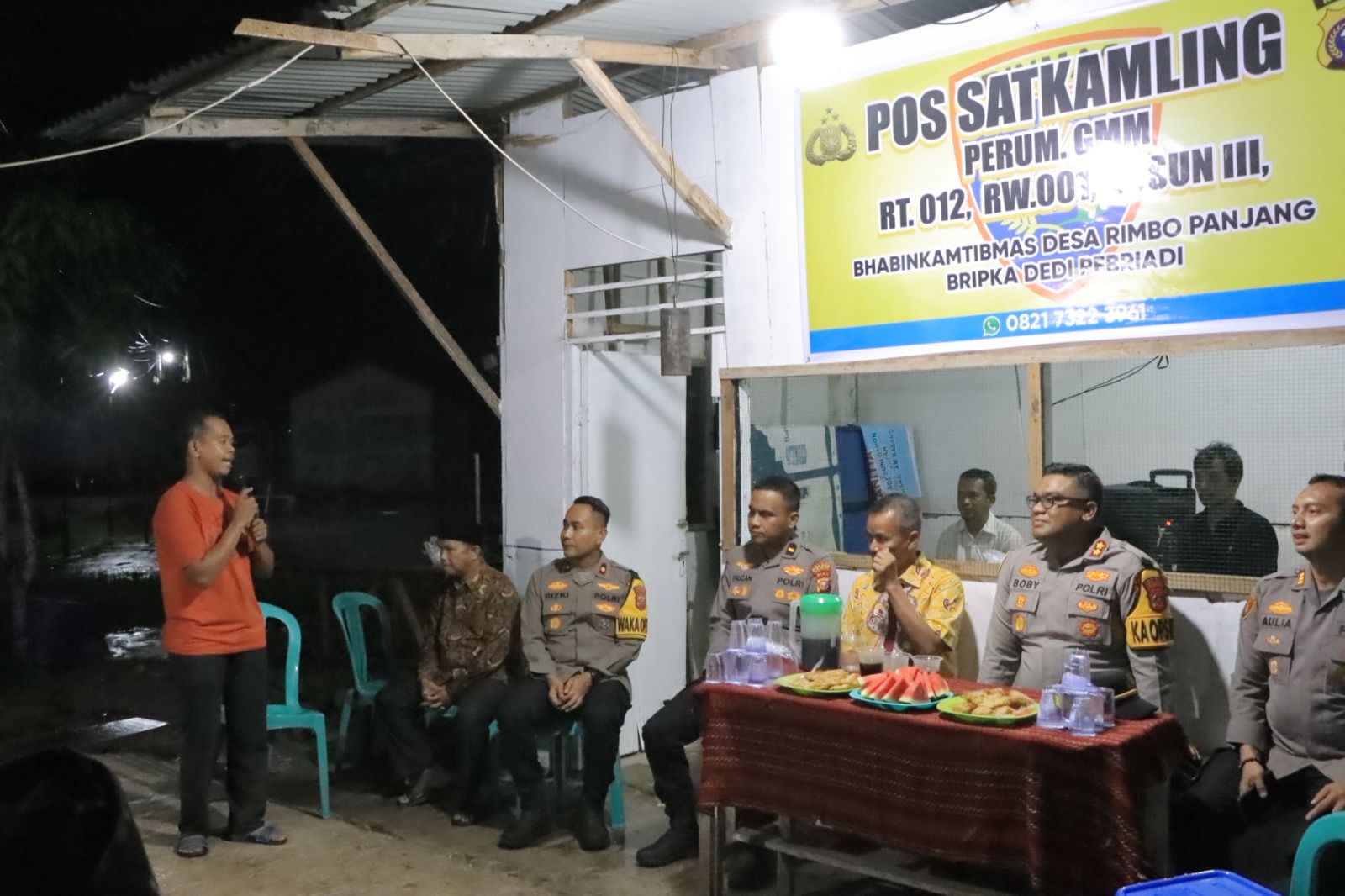 Kegiatan yang dilaksanakan pada Sabtu (27/12/2025) malam ini, diawali dengan kunjungan Kapolres Kampar dan PJU Polres Kampar ke Pos Sat Kamling Jl .Kamboja Perumahan Shanon regency RT 08 RW 02 DUSUN 02 Desa Rimbo Panjang Kec. Tambang Kab. Kampar, dan Pos Satkamling Perumahan Graha Mutiara Mandiri RT 012 RW.001 Dusun III Desa Rimbo Panjang, Kec. Tambang, Kampar.