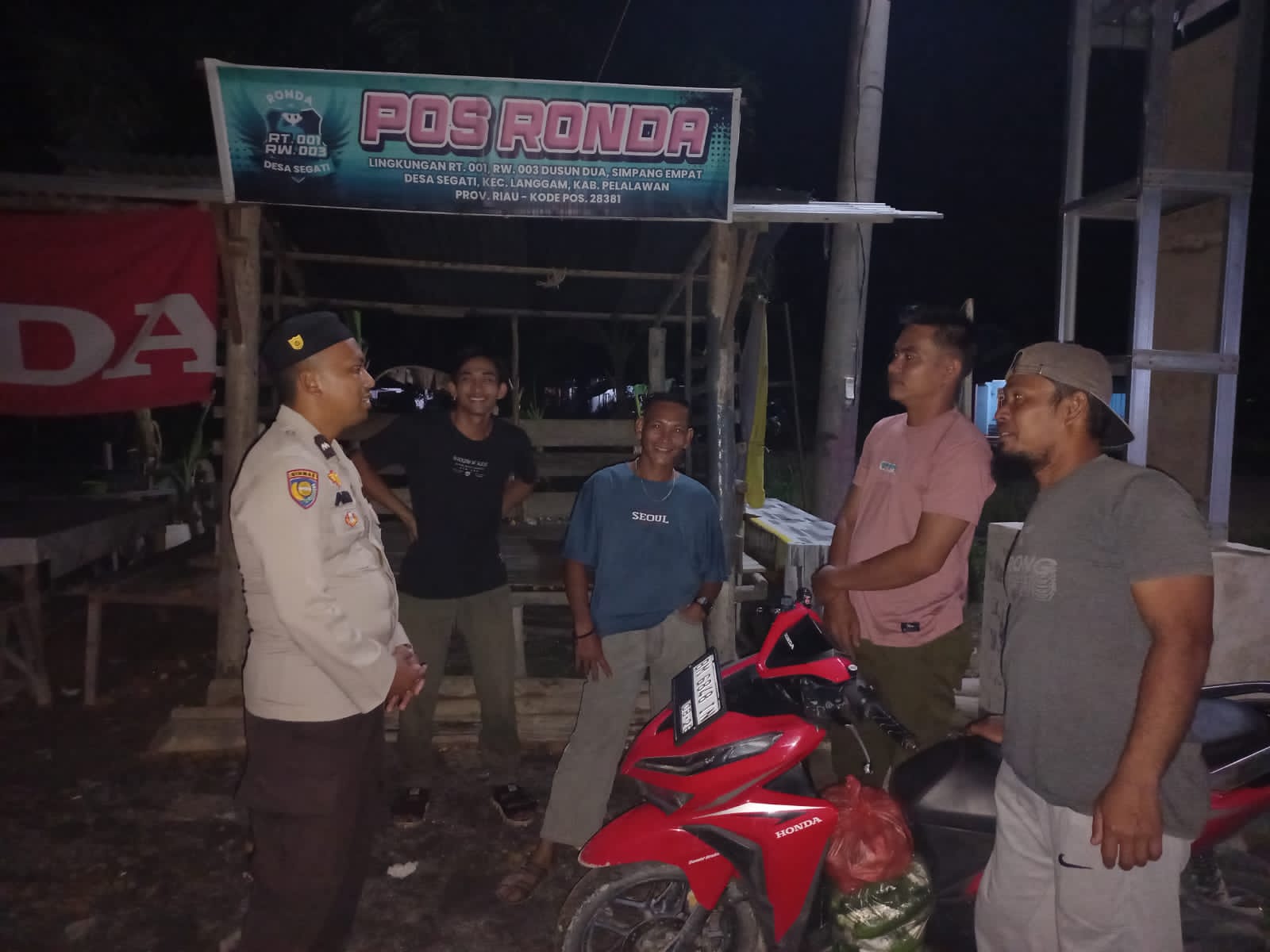 IPNews.id – PELALAWAN – RIAU | Upaya menciptakan situasi keamanan dan ketertiban masyarakat (Harkamtibmas) terus dilakukan oleh jajaran Polsek Langgam. Selasa malam (07/10/2025), personel Polsek melakukan pengecekan Pos Kamling di Jalan Koridor, Desa Segati, Kecamatan Langgam, Kabupaten Pelalawan.