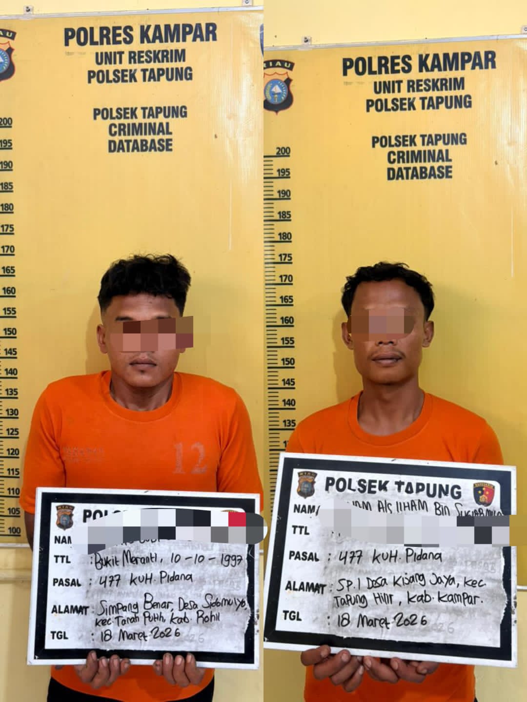 Kemudian Kanit Reskrim Polsek Tapung AKP Rhino Handoyo, beserta anggota pada Rabu (18/3/2026) sekira jam 01.00 Wib Panitopsnal Reskrim Polsek Tapung beserta anggota langsung melakukan penangkapan.
