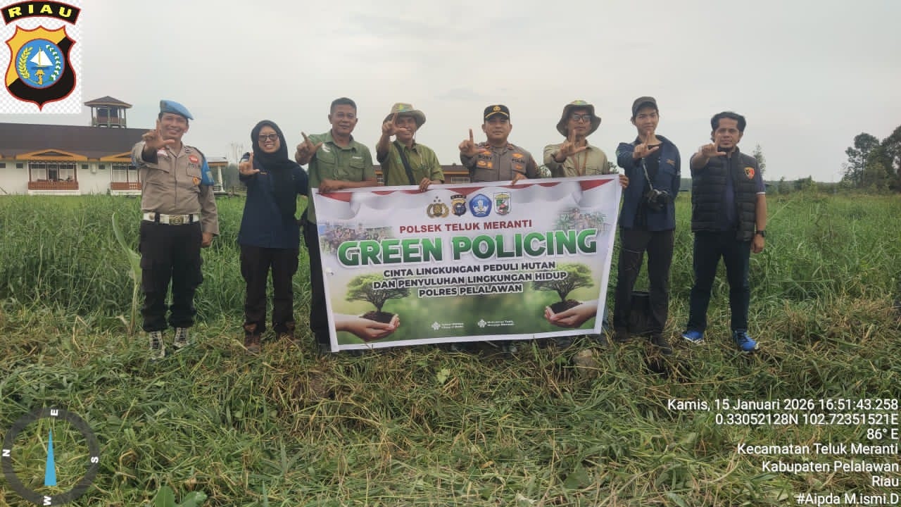 IPNews.id – PELALAWAN – RIAU |Polsek Teluk Meranti Polres Pelalawan melaksanakan kegiatan sosialisasi Green Policing dan penanaman bibit pohon di PT Gemilang Cipta Nusantara (GCN), Kamis, 15 Januari 2026, pukul 10.00 WIB. Kegiatan ini dipimpin Kapolsek Teluk Meranti IPDA Boby Even, S.H., M.H., didampingi personel Polsek dan diikuti oleh perwakilan perusahaan serta mahasiswa IPB.