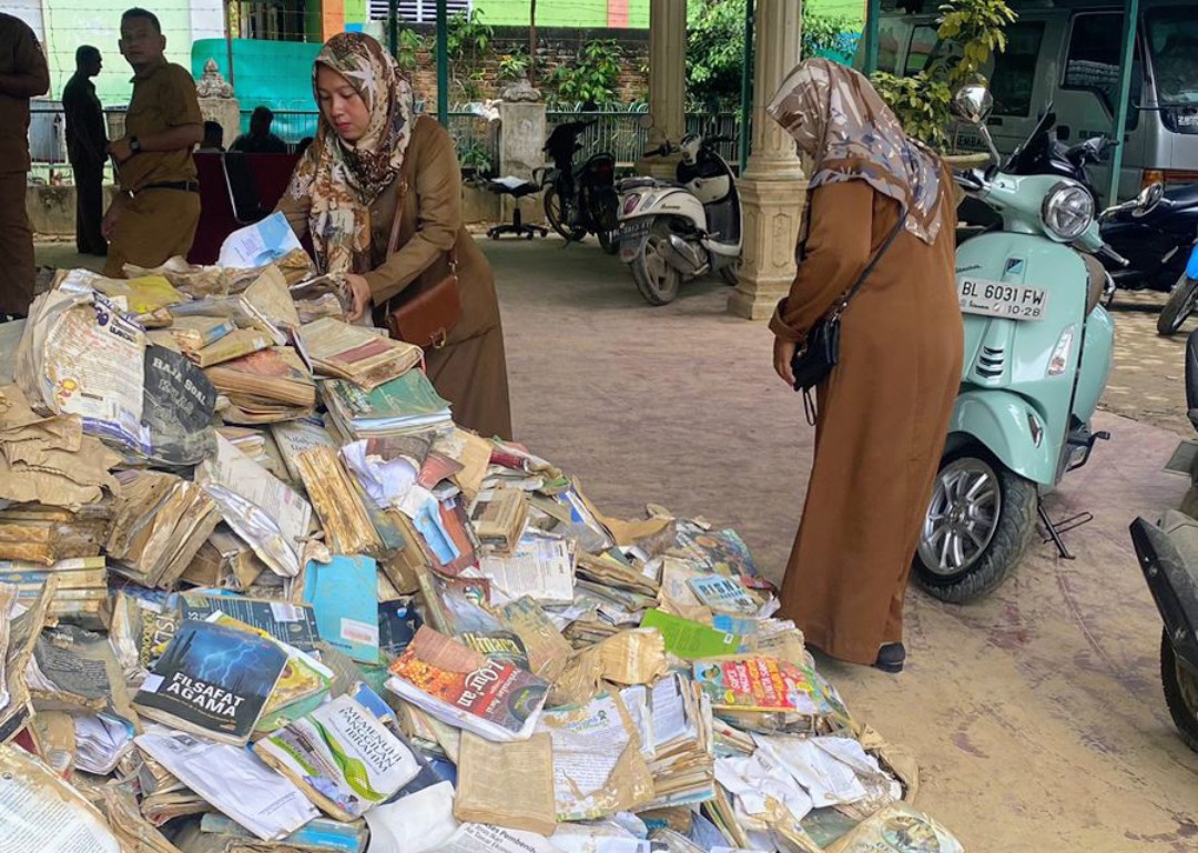 Kota Langsa – Sebanyak lebih kurang puluhan ribu buku di perpustakaan Kota Langsa rusak akibat bencana hidrometeorologi banjir dan longsor pada 26 November 2025 lalu.