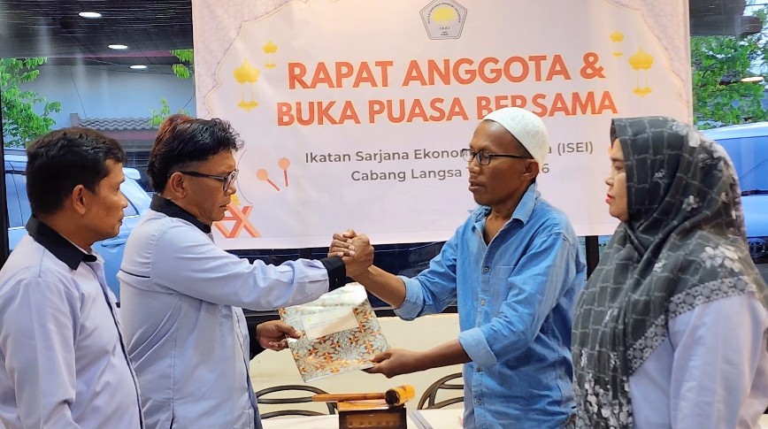Alhamdulillah hari ini telah kita laksanakan rapat anggota untuk penetapan Ketua ISEI Cabang Langsa dan buka puasa serta mendengarkan tausiyah, ungkapnya.