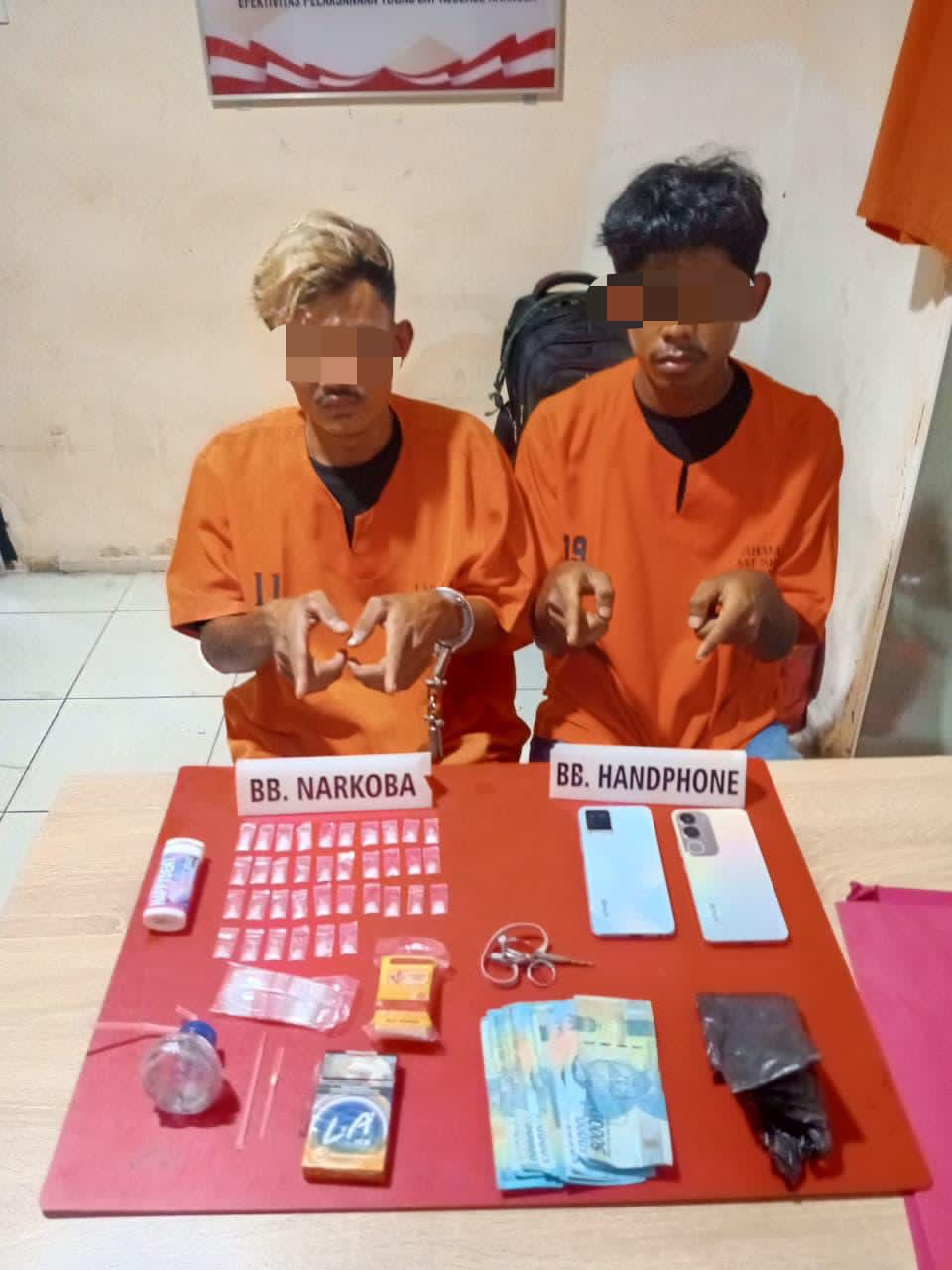 Kapolres Kampar AKBP Boby Putra Ramadhan S melalui Kasat Narkoba AKP Markus Sinaga mengatakan kedua pelaku ditangkap berkat laporan masyarakat yang sudah sangat meresahkan peredaran Narkoba di wilayah tersebut. “Hasil penggeledahan 36 paket sabu-sabu, 2 Handphone, kotak rokok dan barang bukti lainnya,” jelasnya.