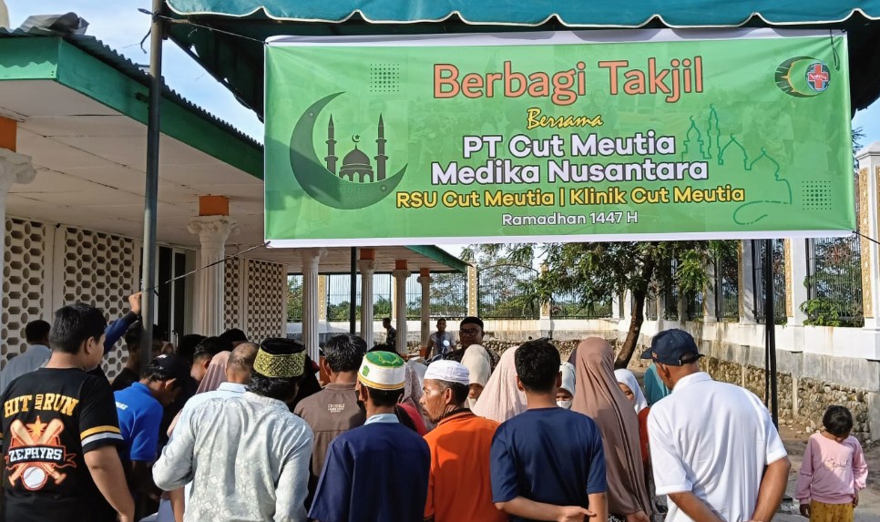 PT CMN Buka Stand Takjil Gratis Selama Ramadan untuk umum di depan RSU Cut Meutia, Jumat (19/02/2026). Kota Langsa – Menyemarakkan bulan suci Ramadhan 1447 Hijriah, PT Cut Meutia Medika Nusantara (PT CMN) bersama unit RSU Cut Meutia dan Klinik Cut Meutia membuka stand berbagi takjil gratis rutin setiap tahun selama bulan suci Ramadan.