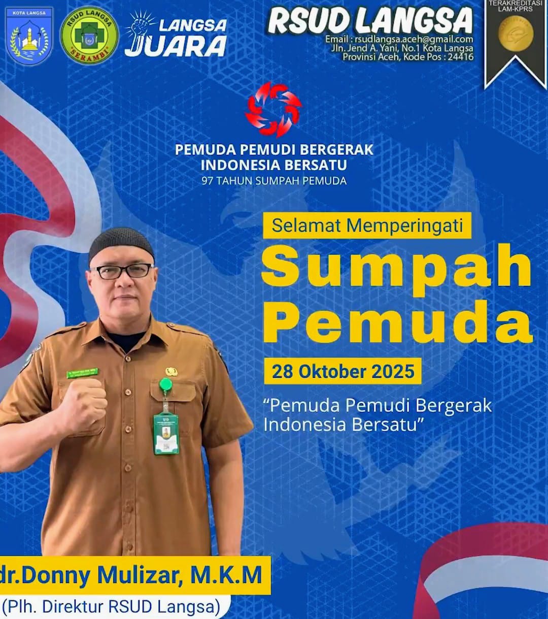 Selamat Hari Sumpah Pemuda ke-97, Langsa, 28 Oktober 2025. Direktur RSUD Langsa, dr. Donny Mulizar MKM.
