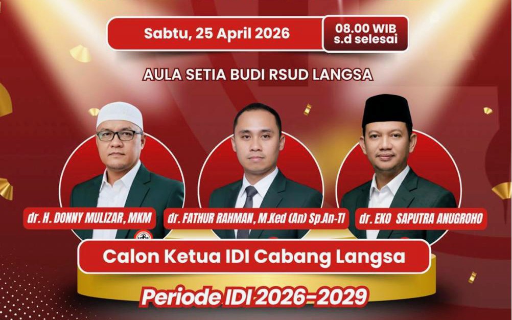 Kota Langsa – Tiga kandidat melancarkan strategi mumpuninya untuk memperebutkan kursi panas Ketua Ikatan Dokter Indonesia (IDI) Cabang Kota Langsa untuk periode 2026-2029 mendatang.