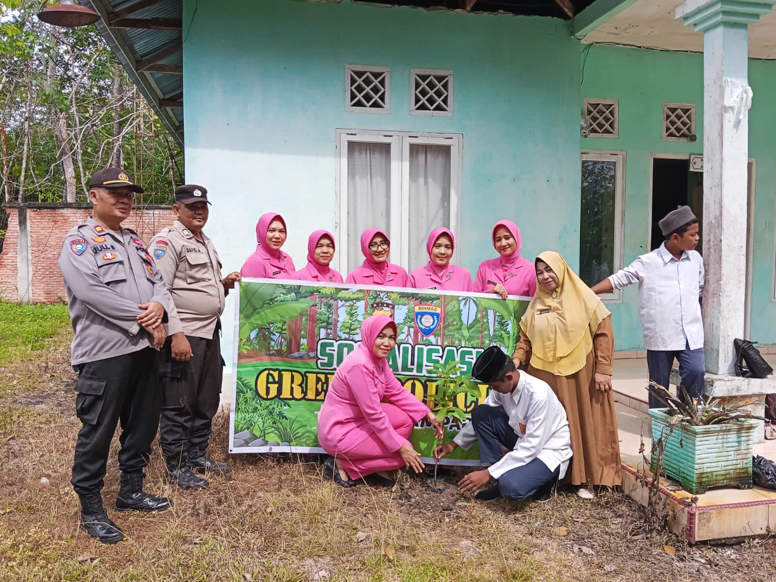 Setelah pemberian sembako, dilaksanakan kegiatan penanaman pohon sebagai bagian dari program Green Policing. Sebanyak 2 batang bibit pohon mangga dan 2 batang bibit pohon lengkeng ditanam bersama oleh jajaran Bhayangkari dan anak-anak pesantren di sekitar area pondok pesantren. Kegiatan ini bertujuan untuk meningkatkan kesadaran akan pentingnya menjaga kelestarian lingkungan serta mempercantik lingkungan sekitar pondok pesantren.